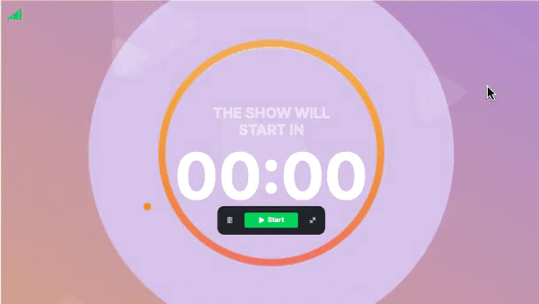 The Countdown Widget is a great way to signal the start of your broadcast. It can also be used to indicate a broadcast break, to play games with the audience, to announce the end of a promotion, and many more!