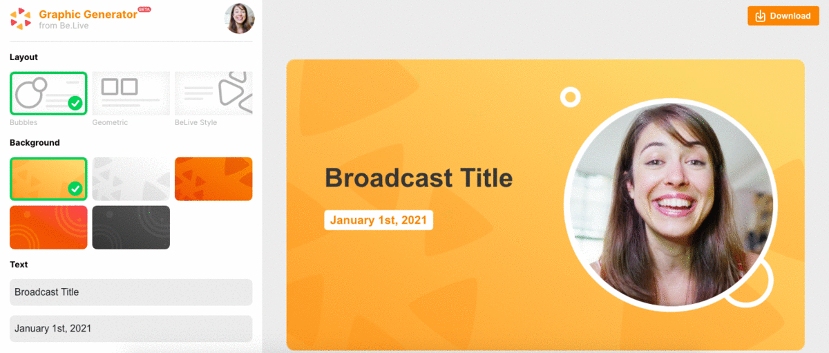 - Select your preferred layout (Bubbles, Geometric or Be.Live theme).