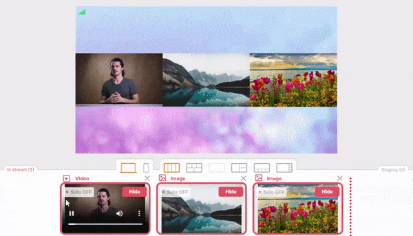 When you have multiple active sources in the studio but want to display just a single source during the broadcast. Using the Solo button will not disable microphones for other active sources so you and your guests will still be heard in the background.