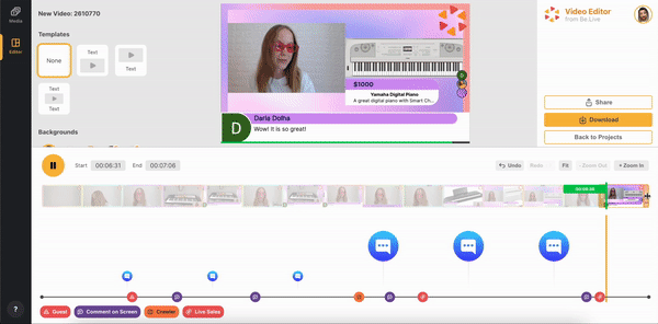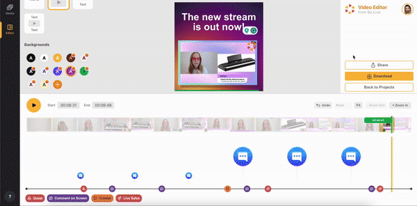 - Trim the part of the stream you’d like to re-purpose and apply different overlays and backgrounds: